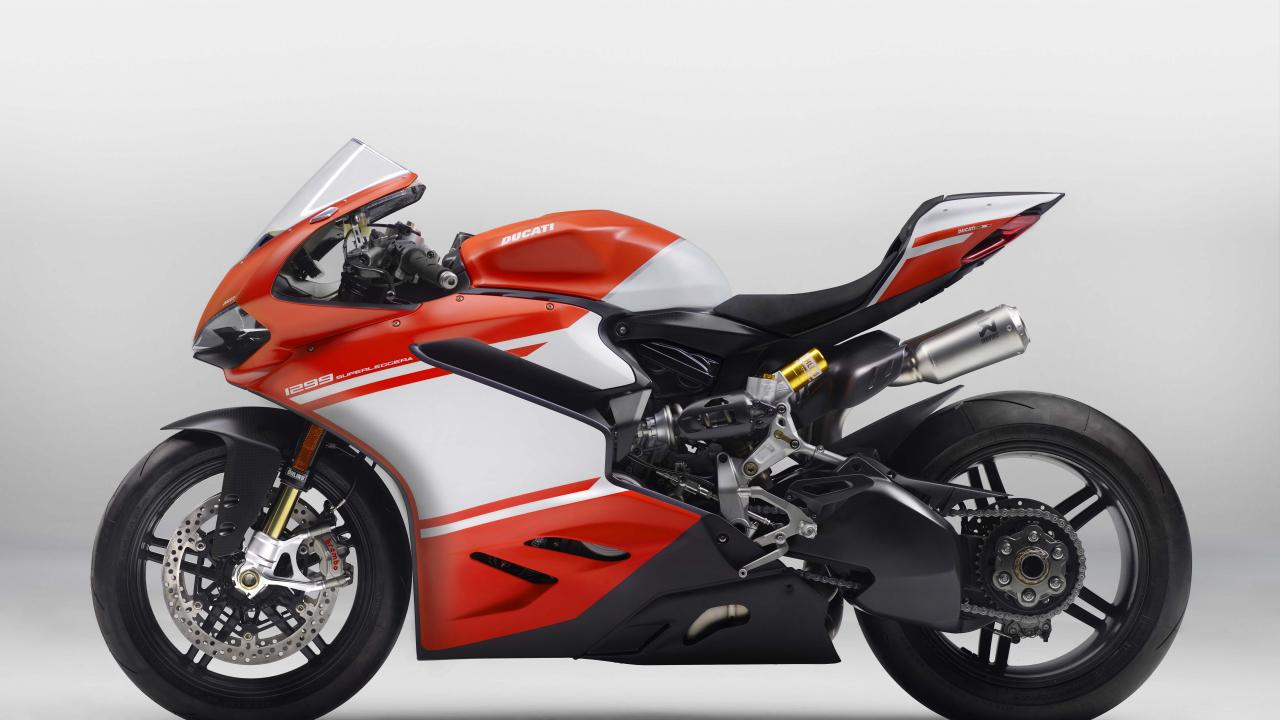 Обои Мотоцикл Ducati 1299 Superleggera на сером фоне