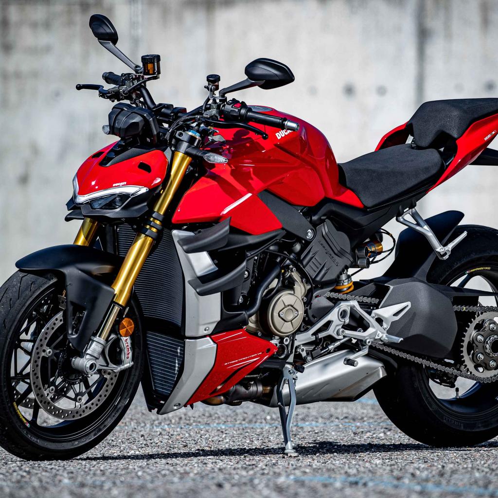 Обои Красный быстрый новый мотоцикл Ducati V4 Streetfighter, 2021 года