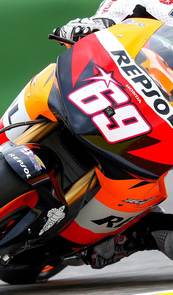 Обои Мотоциклист на мотоцикле Honda MotoGP 2019 года на гоночной трассе