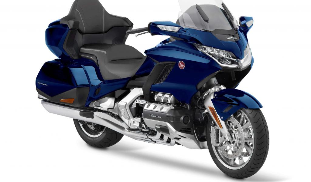 Обои Синий мотоцикл Honda Gold Wing на белом фоне