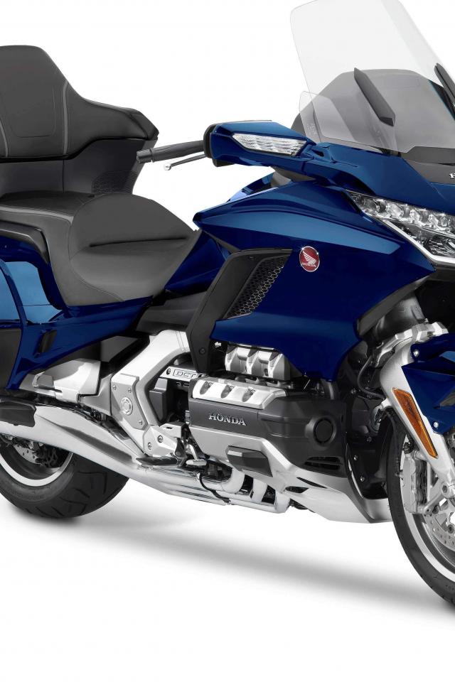 Обои Синий мотоцикл Honda Gold Wing на белом фоне