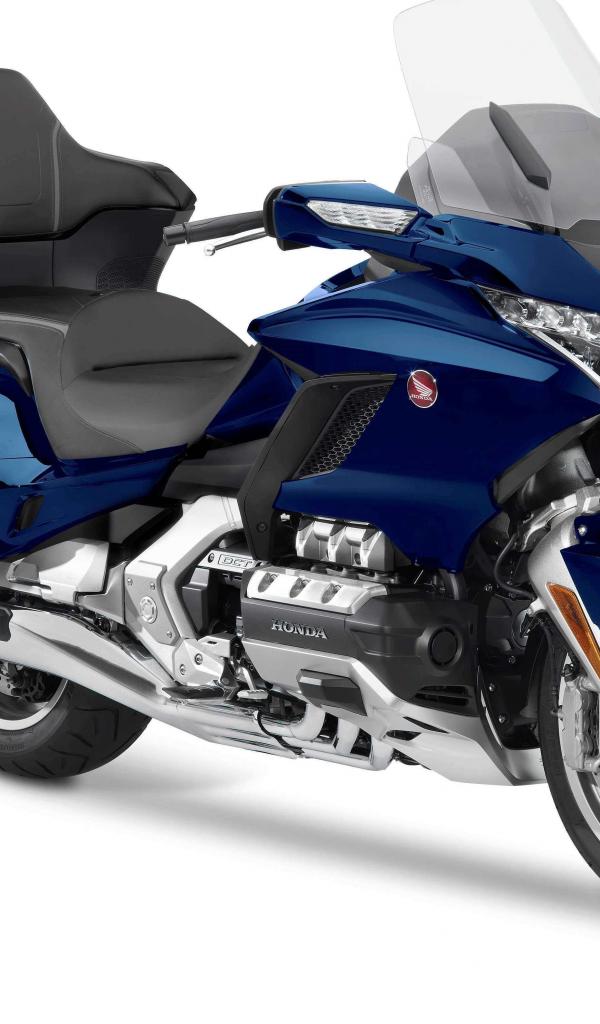 Обои Синий мотоцикл Honda Gold Wing на белом фоне
