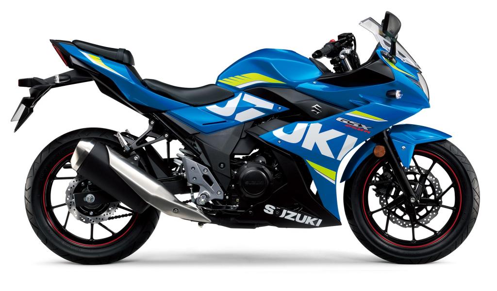 Обои Синий мотоцикл Suzuki GSX250R на белом фоне