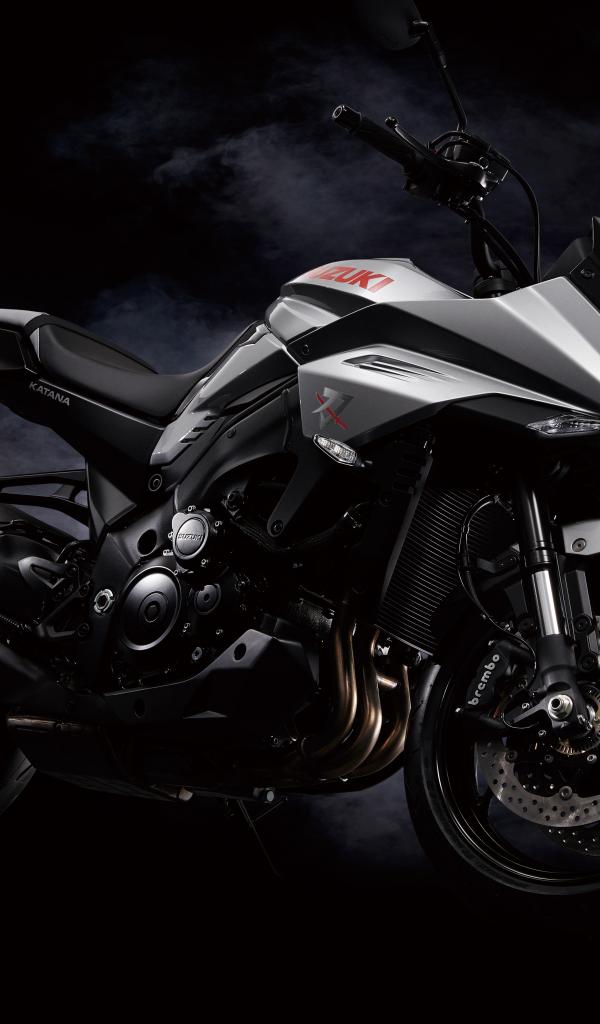 Обои Черный мотоцикл Suzuki GSX-S1000S Katana в дыму