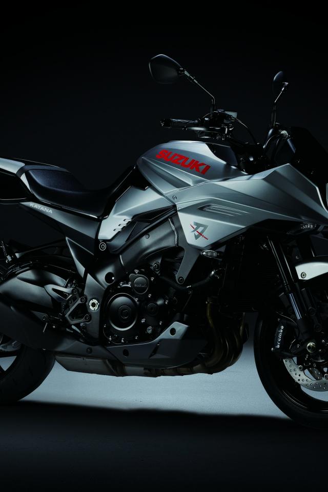 Обои Мотоцикл Suzuki Katana 2020 года на сером фоне