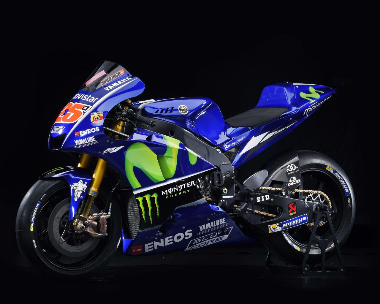 Обои Мотоцикл Yamaha YZR-M1 на черном фоне