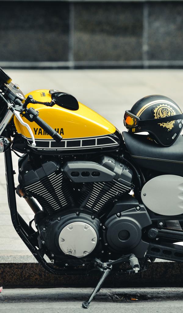 Обои Мотоцикл Yamaha со шлемом на сиденье