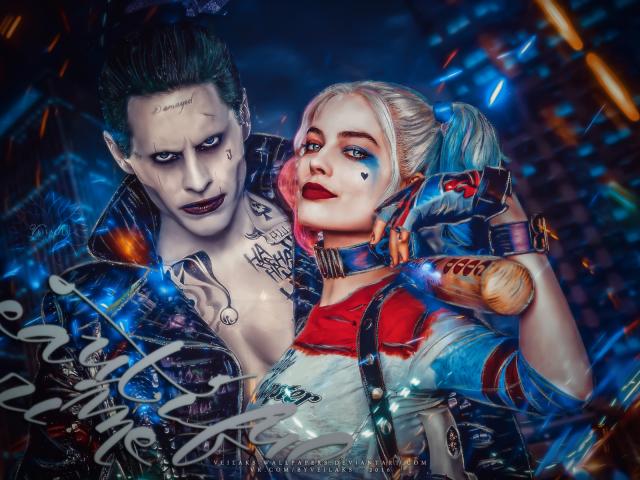 Обои Джокер и Харли Квинн герои фильма Отряд самоубийц