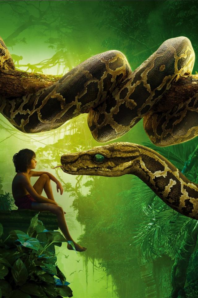 Обои Мальчик Маугли и удав Каа персонажи фильма Книга джунглей 2016