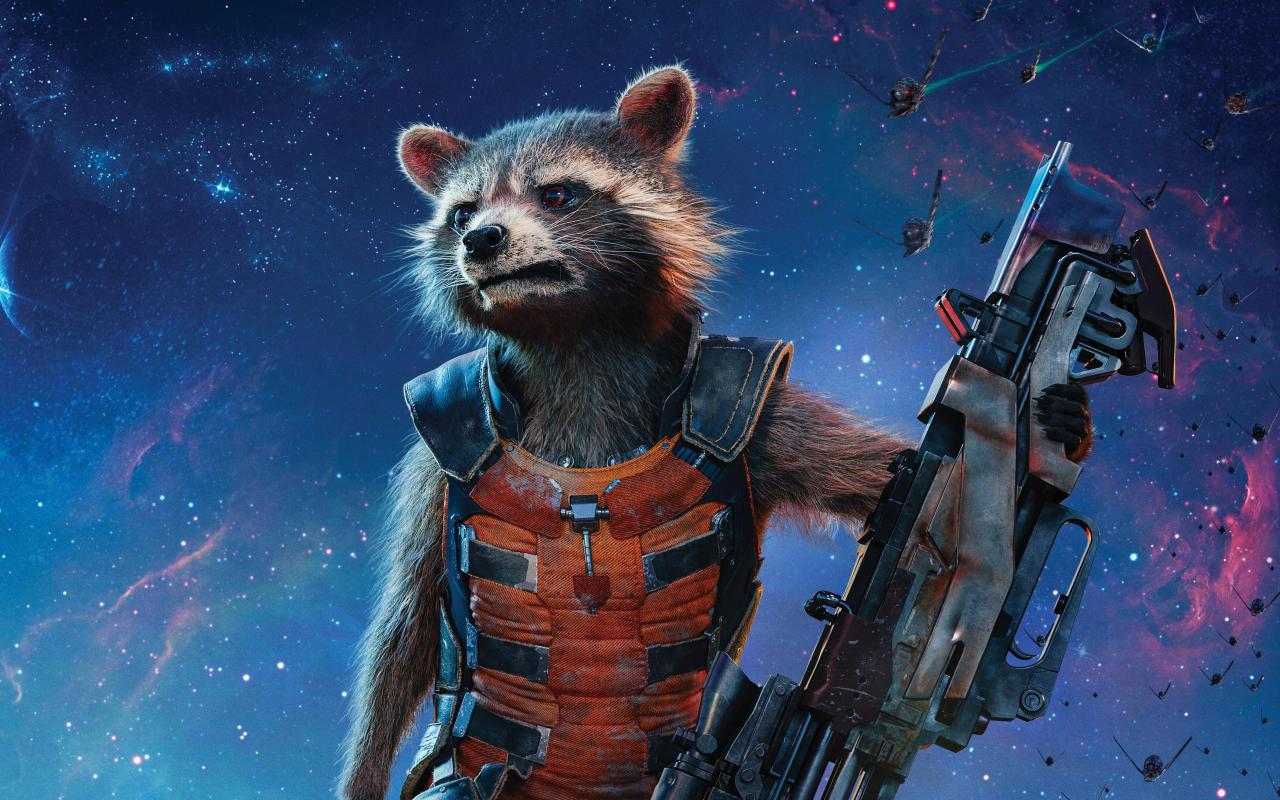 Обои Реактивный Енот персонаж фильма Стражи галактики 2