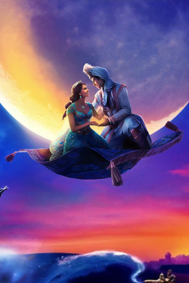 Обои Алладин и Жасмин на ковре самолете на фоне луны