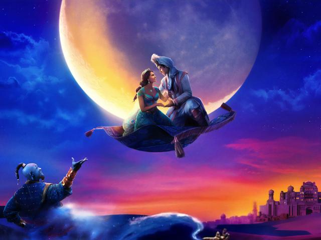 Обои Алладин и Жасмин на ковре самолете на фоне луны