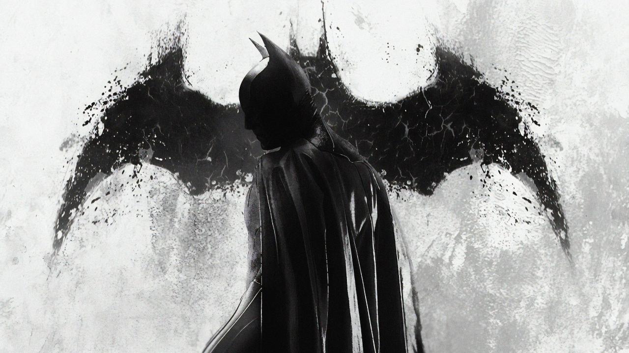 Обои Бэтмен на фоне рисунка летучей мыши на стене
