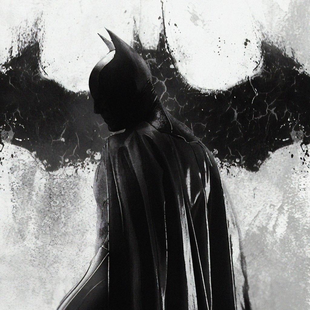 Обои Бэтмен на фоне рисунка летучей мыши на стене
