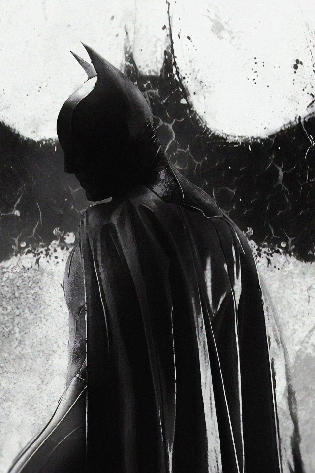 Обои Бэтмен на фоне рисунка летучей мыши на стене