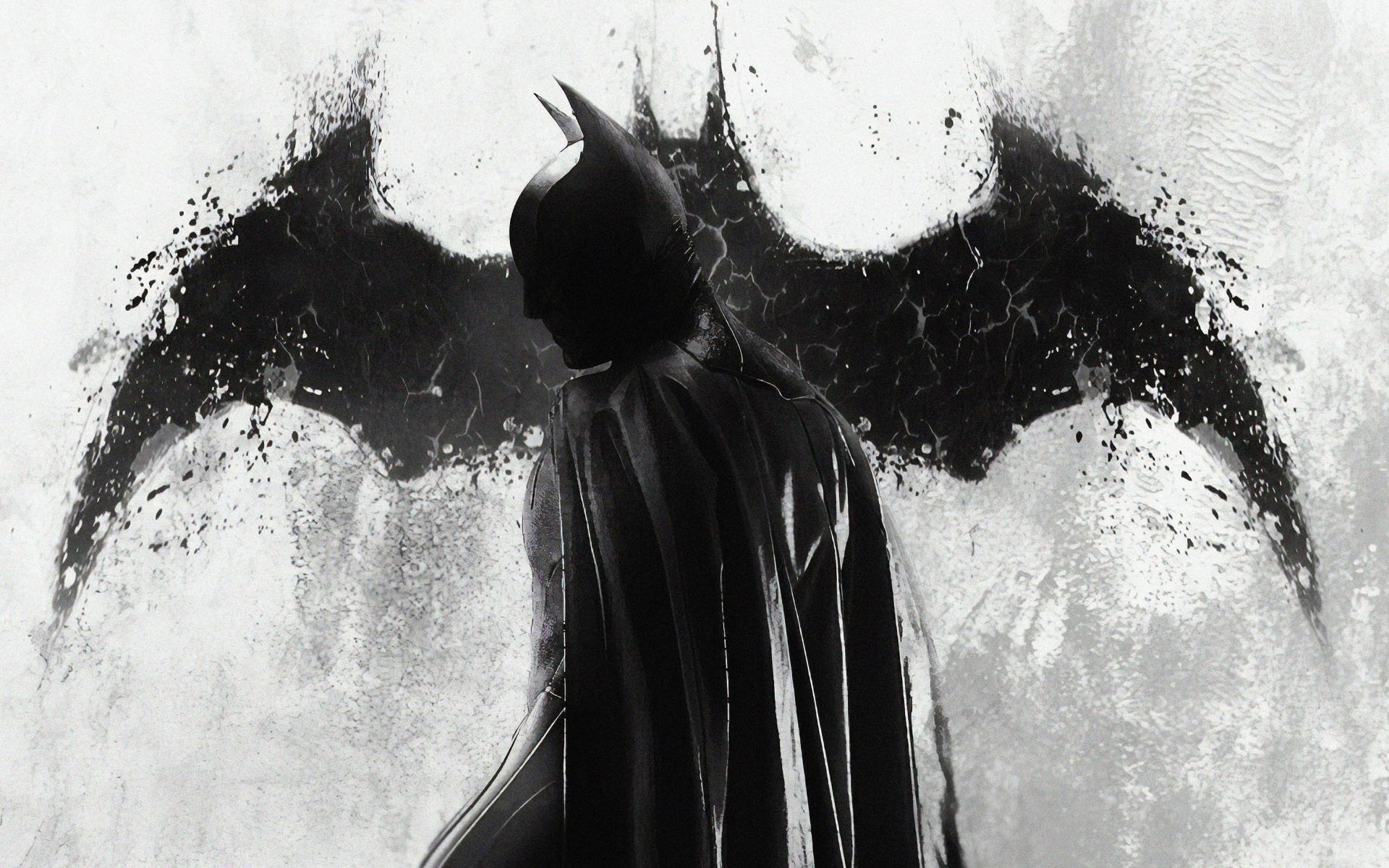 Обои Бэтмен на фоне рисунка летучей мыши на стене