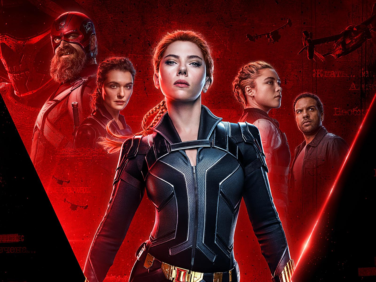 Обои Постер с персонажами фильма Чёрная вдова, 2020 года