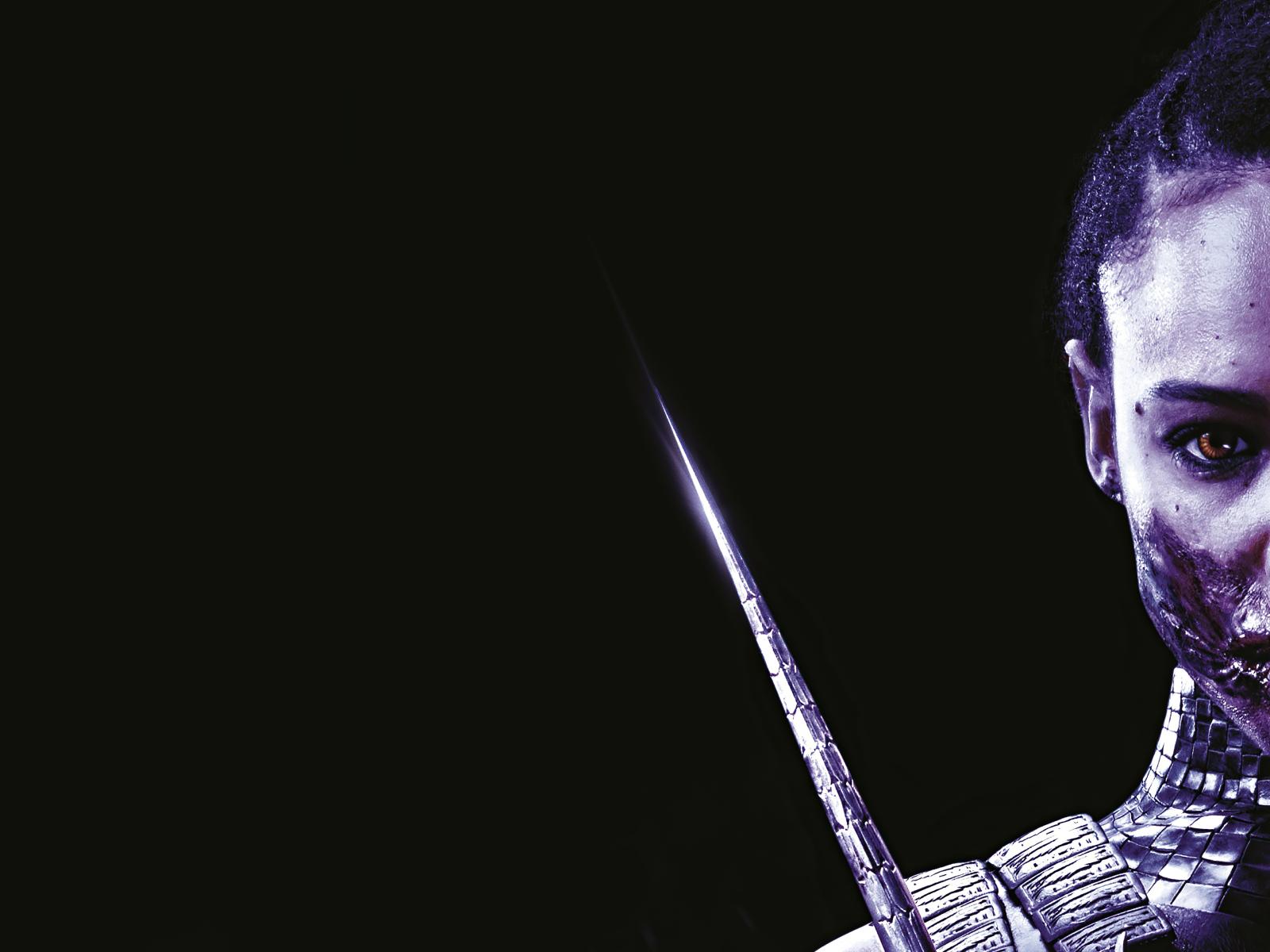 Обои Милина персонаж фильма Мортал Комбат на черном фоне