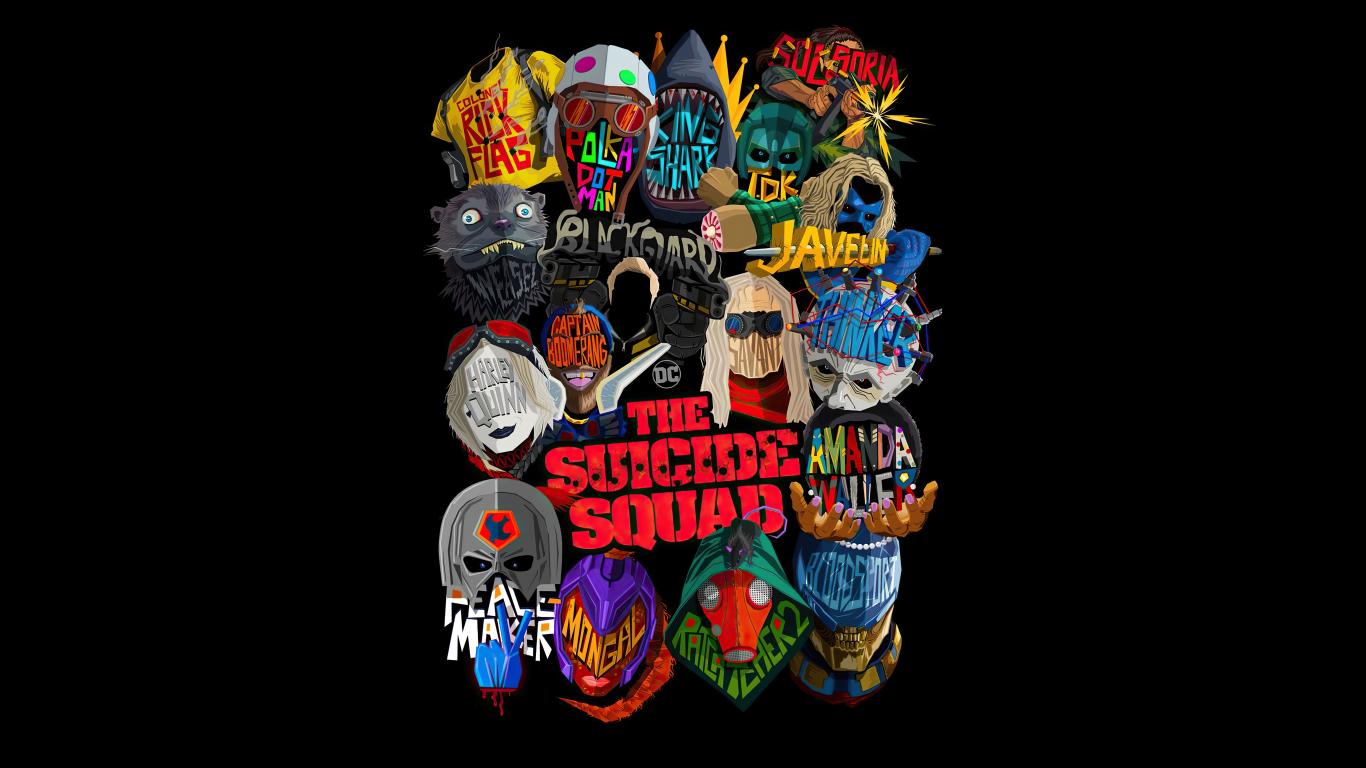 Обои Постер на черном фоне фильм Отряд самоубийц: Миссия навылет, 2021