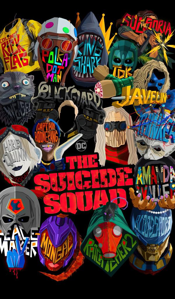 Обои Постер на черном фоне фильм Отряд самоубийц: Миссия навылет, 2021