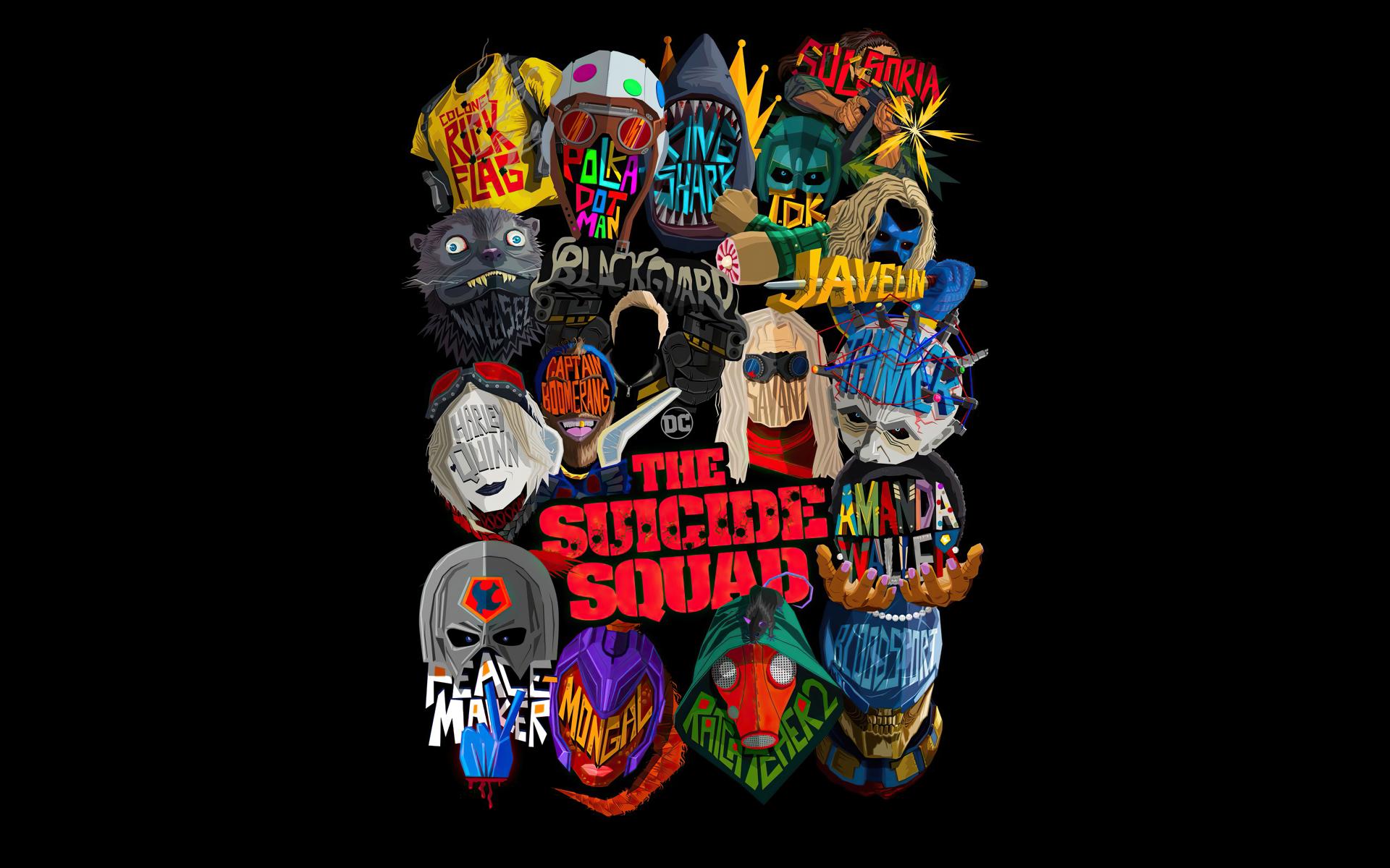 Обои Постер на черном фоне фильм Отряд самоубийц: Миссия навылет, 2021