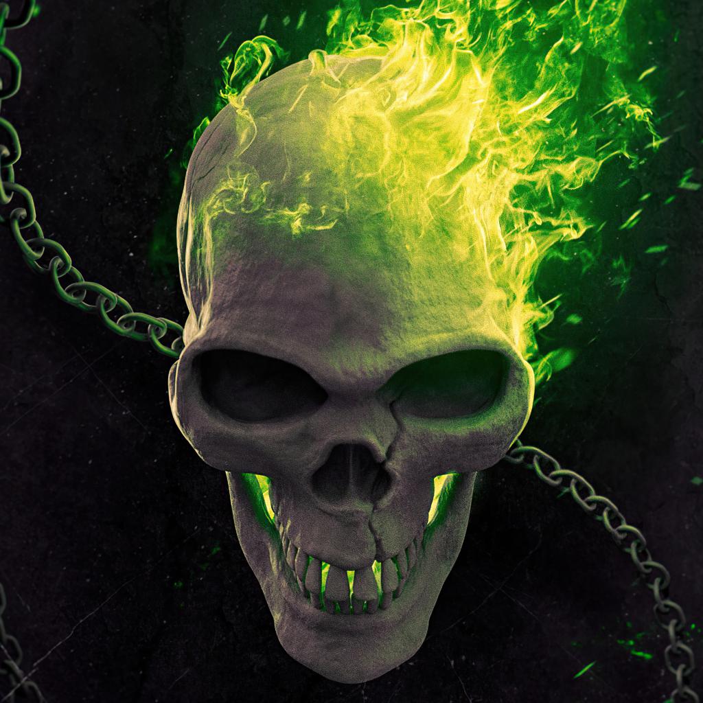Обои Череп с цепями в огне фильм Призрачный гонщик