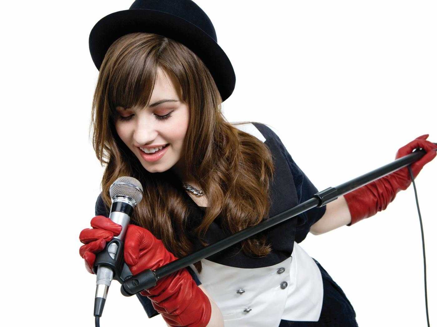 Обои Американская певица и актриса Деми Ловато с микрофоном