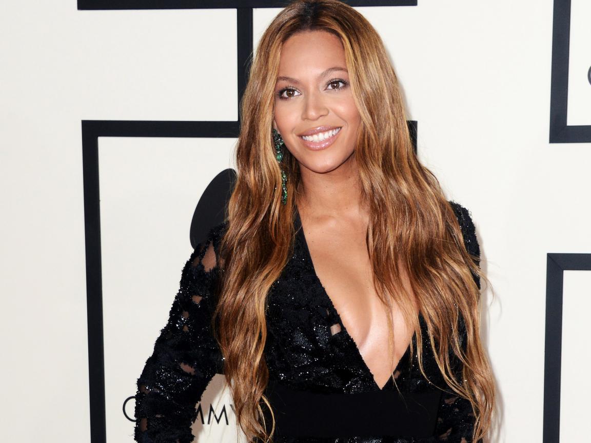 Обои Красивая улыбающаяся певица Бейонсе в черном платье