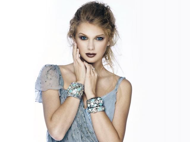 Обои Яркая исполнительница Тейлор Свифт на белом фоне