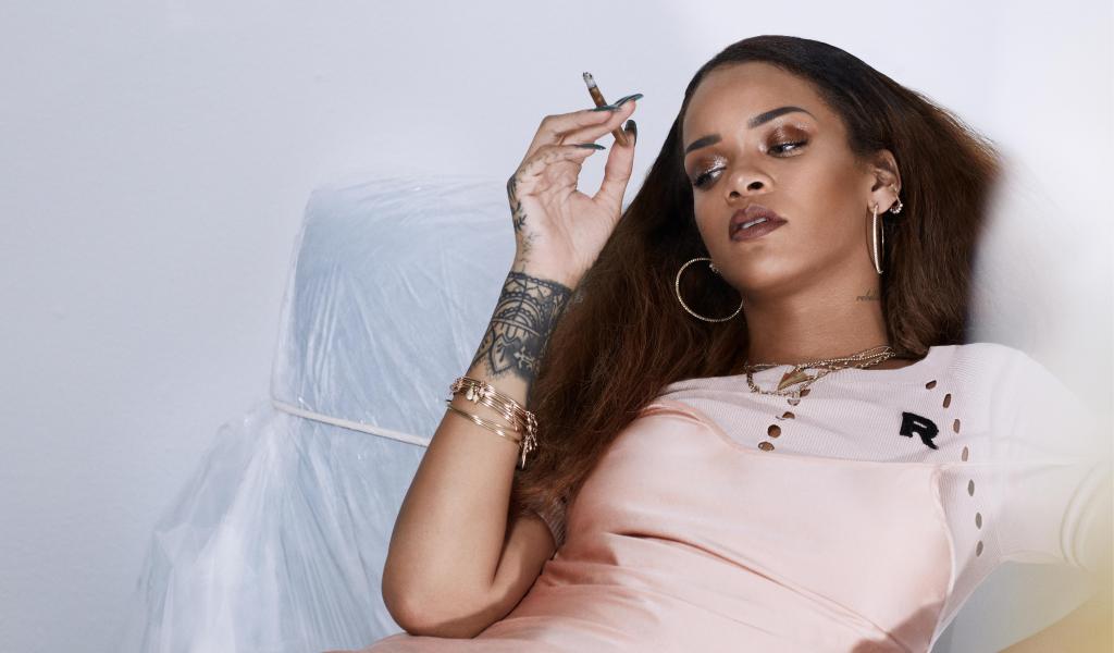 Обои Популярная певица Рианна с сигарой