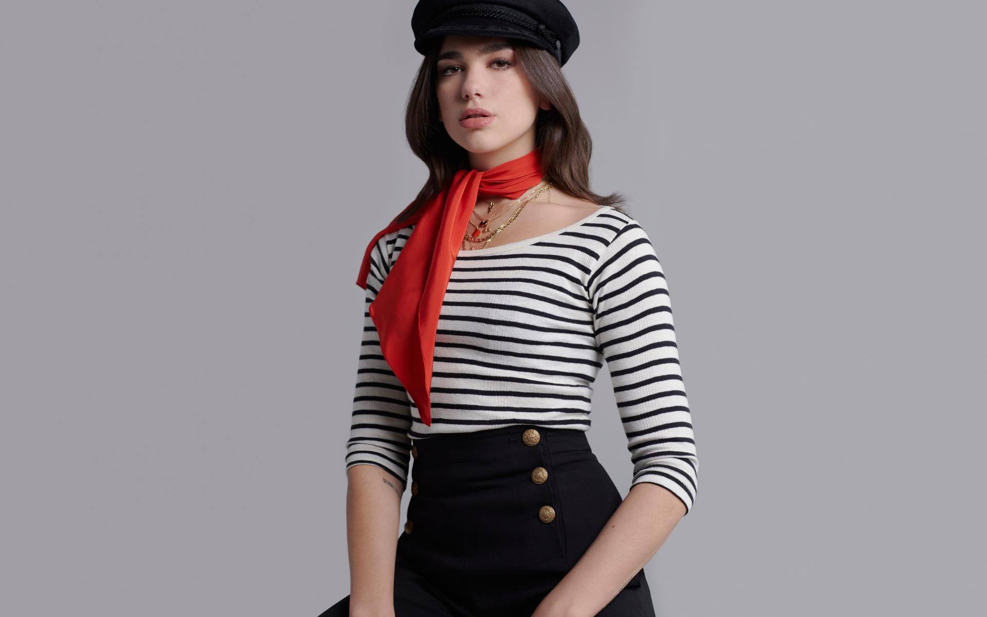 Обои Британская певица Дуа Липа фото на сером фоне