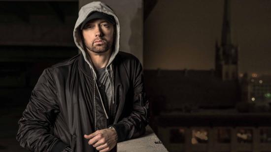 Обои Американский рэпер Эминем в черной куртке