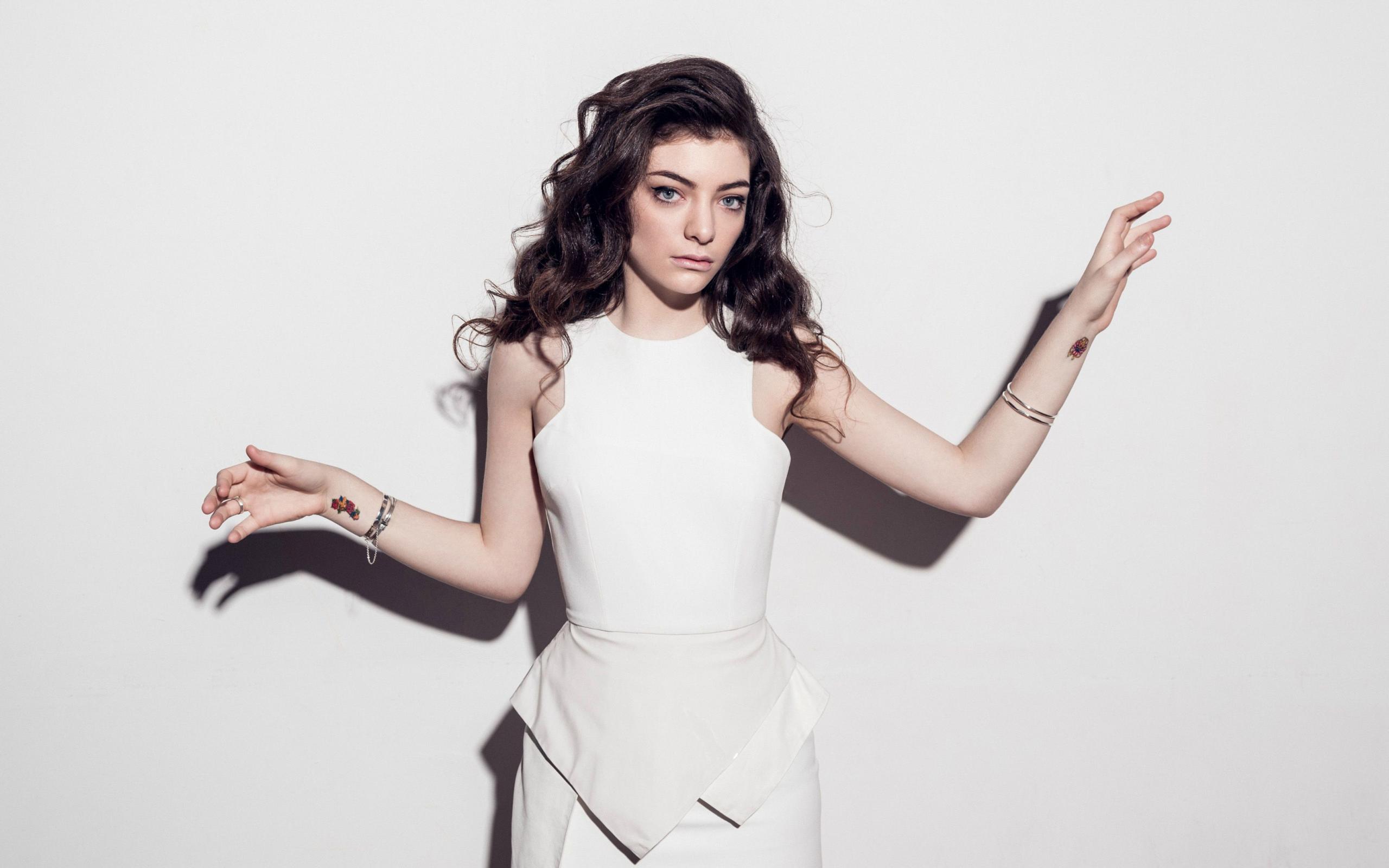 Обои Новозеландская певица Лорд в белом платье