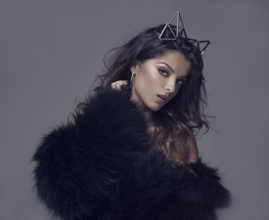 Обои Красивая блондинка, певица Биби Рекса на голубом фоне