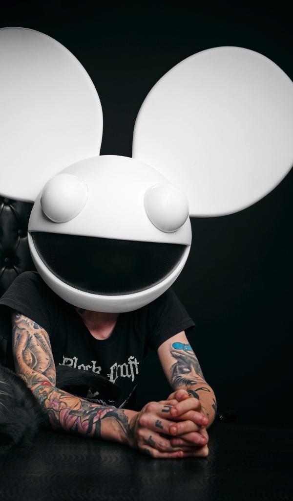 Обои Диджей Дедмаус с котом на черном фоне