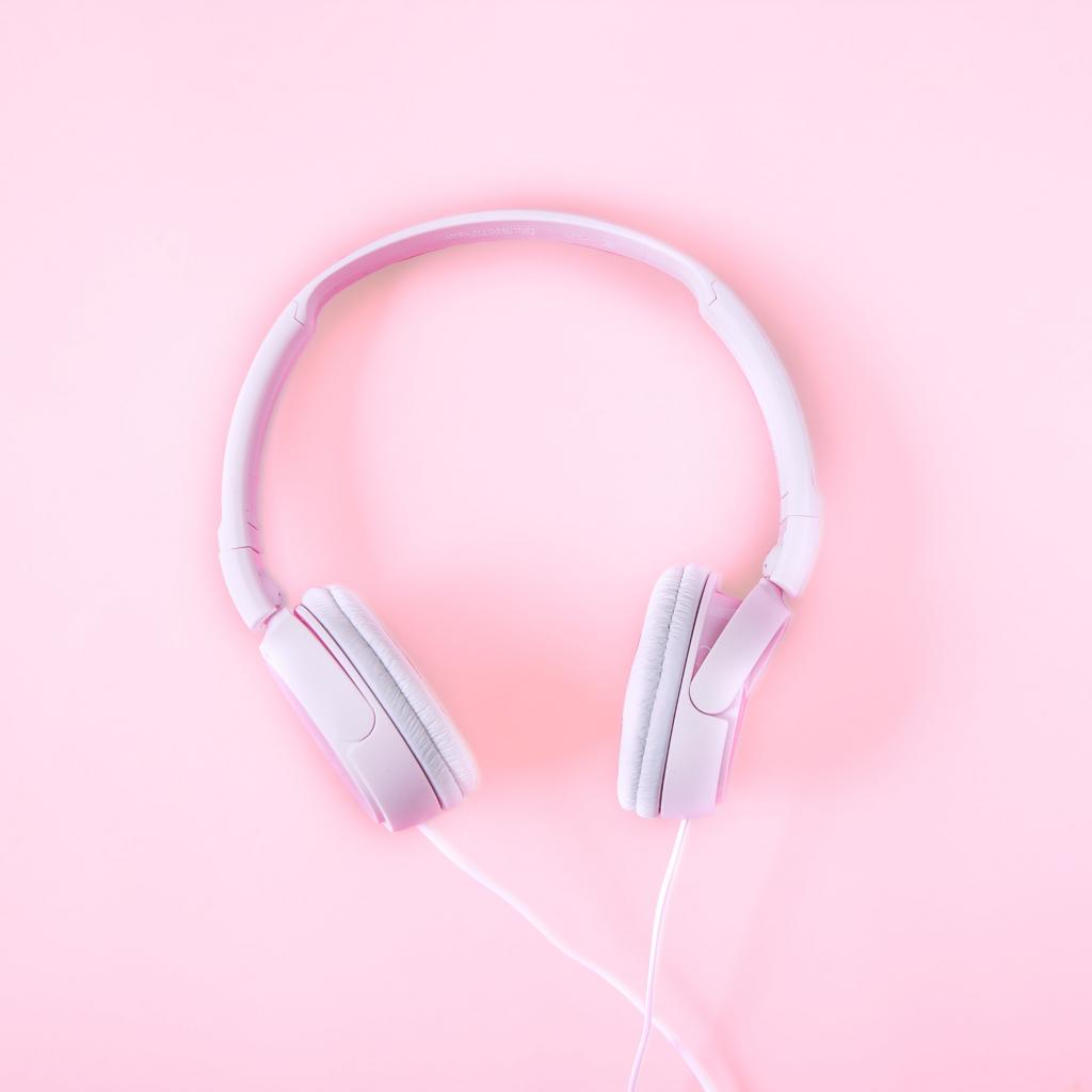 Обои Розовые большие наушники на розовом фоне