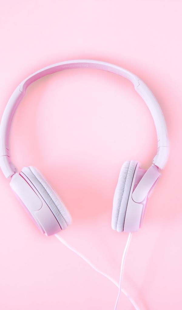 Обои Розовые большие наушники на розовом фоне