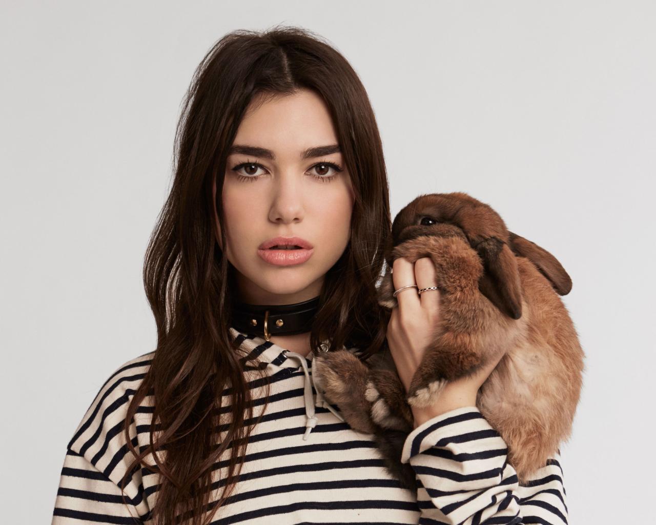 » Обои Певица Дуа Липа с декоративным кроликом в руках