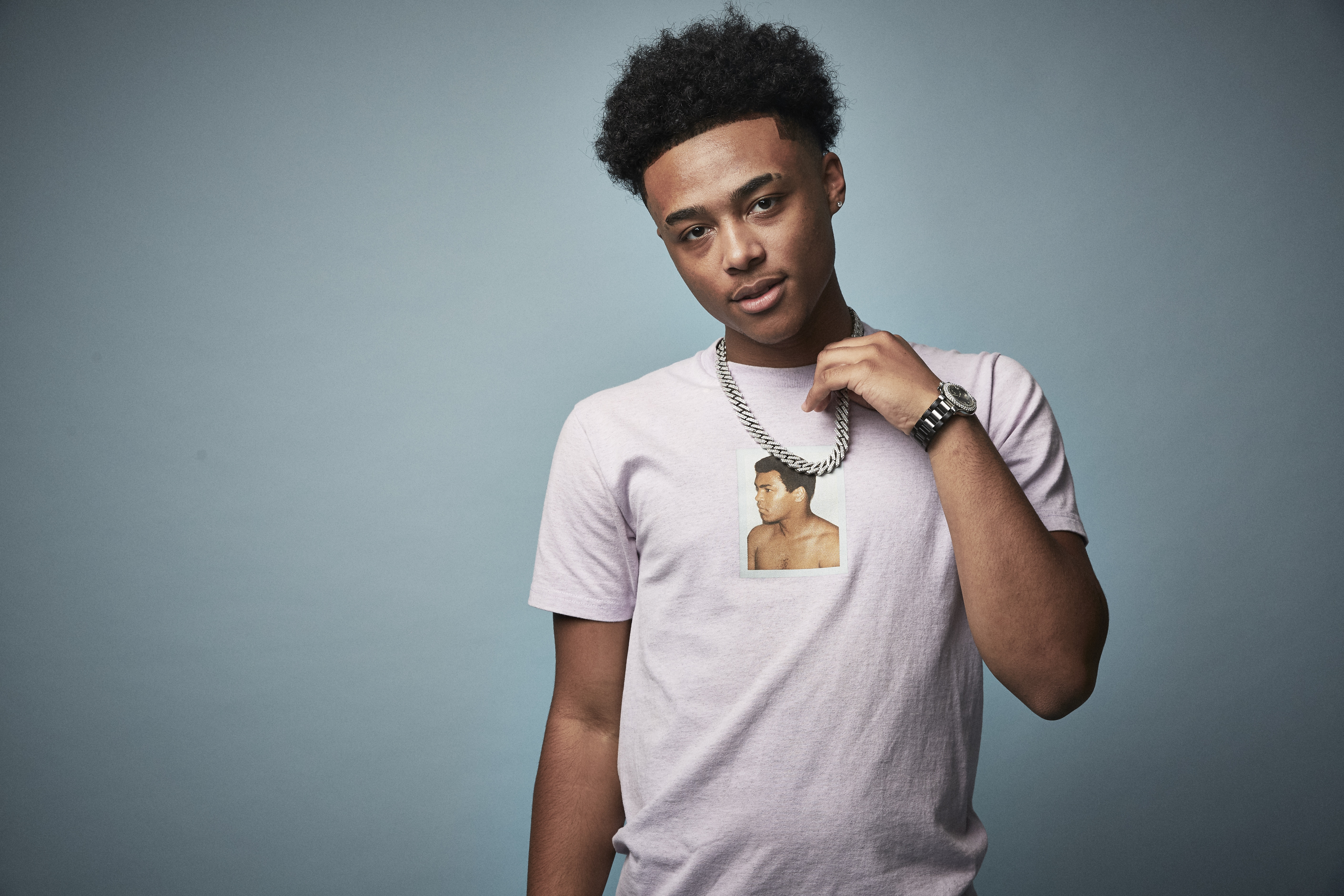 Обои Американский певец, рэпер Luh Kel на сером фоне