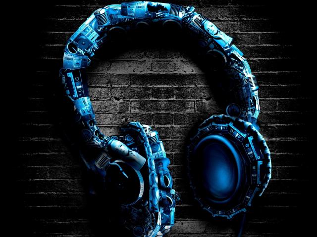Обои Синие стильные наушники на кирпичном фоне
