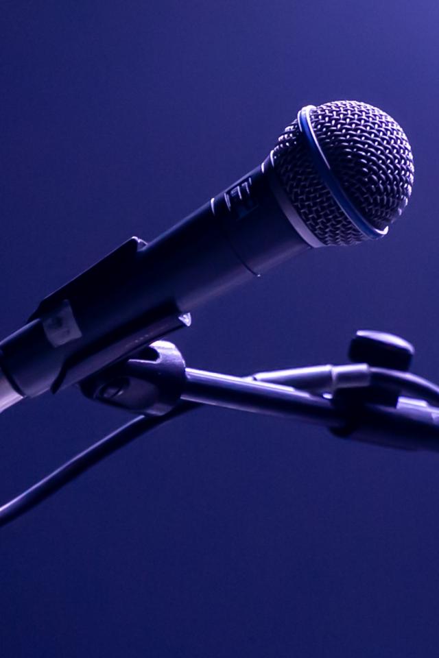 Обои Конденсаторный микрофон с наушниками на коричневом фоне
