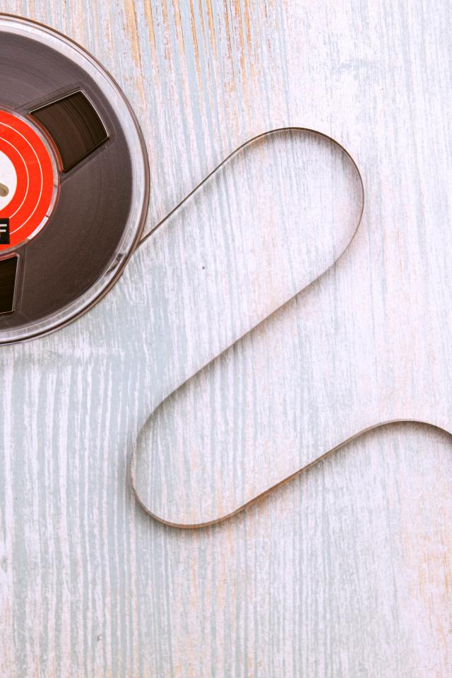 Обои Старая катушка бобины с пленкой на столе