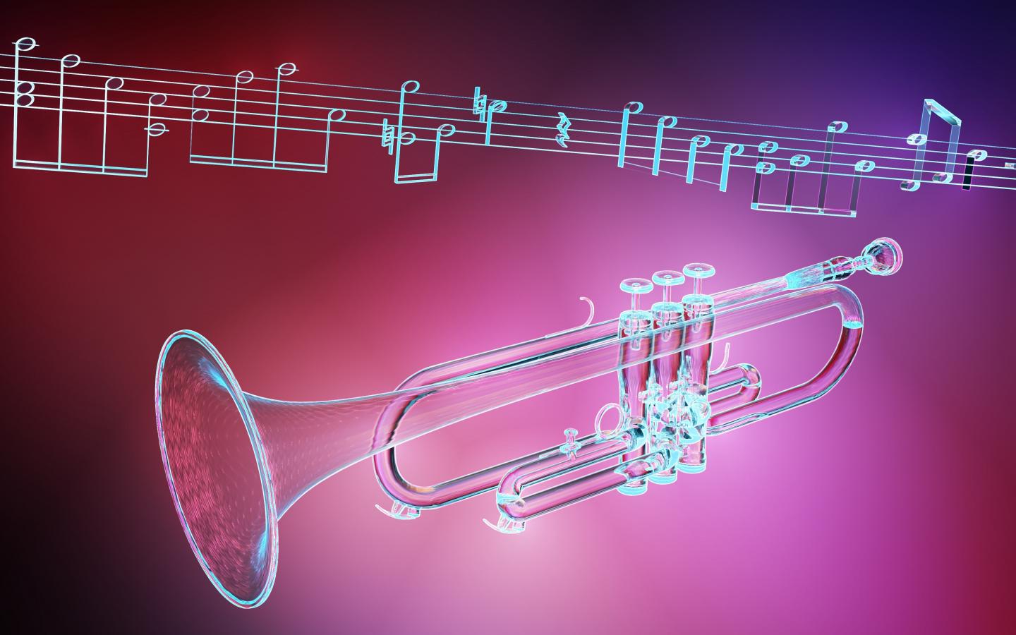 Обои Труба и ноты на розовом фоне
