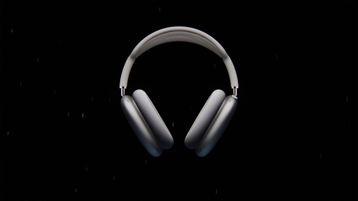 Обои Новые стильные беспроводные наушники Apple AirPods Max на черном фоне