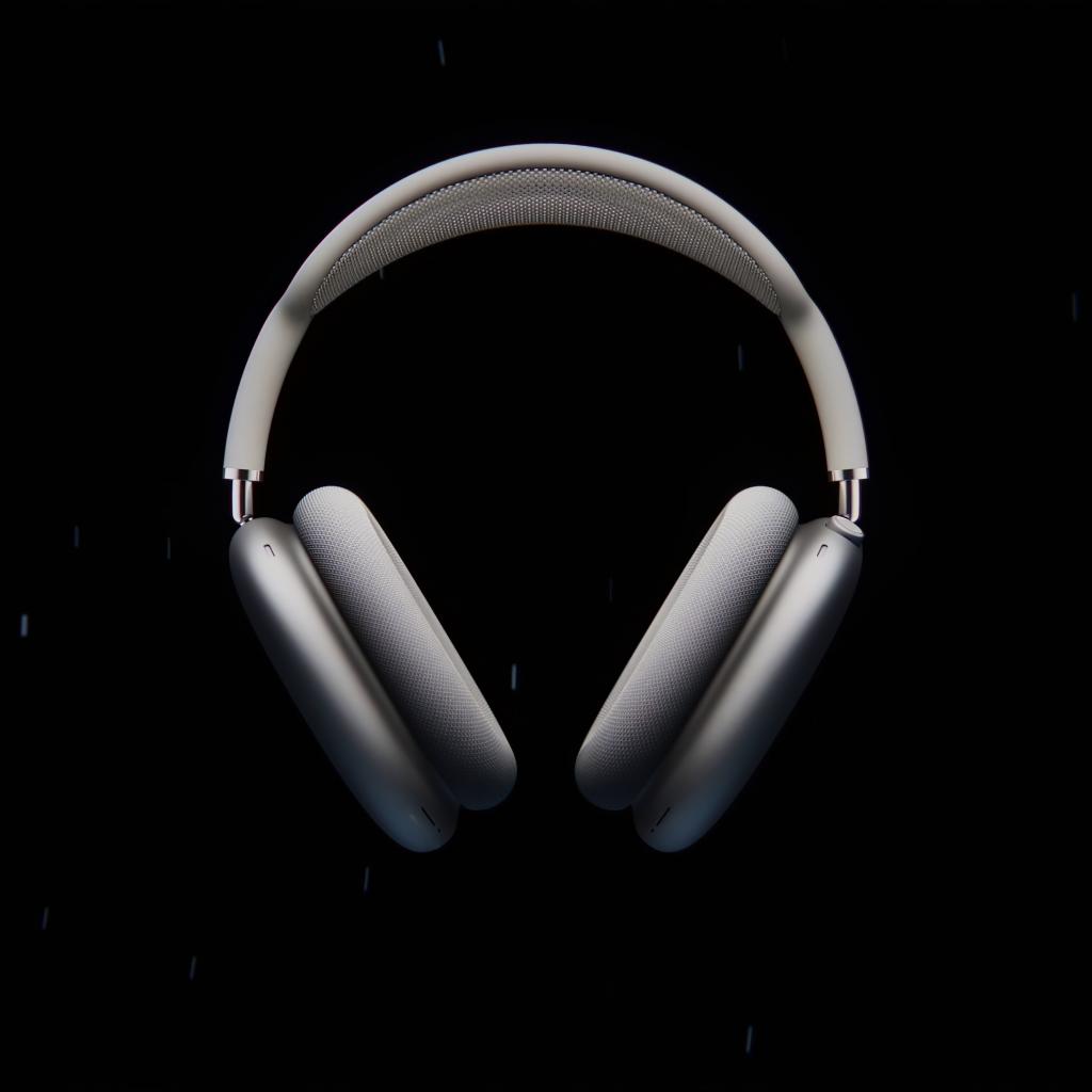 Обои Новые стильные беспроводные наушники Apple AirPods Max на черном фоне