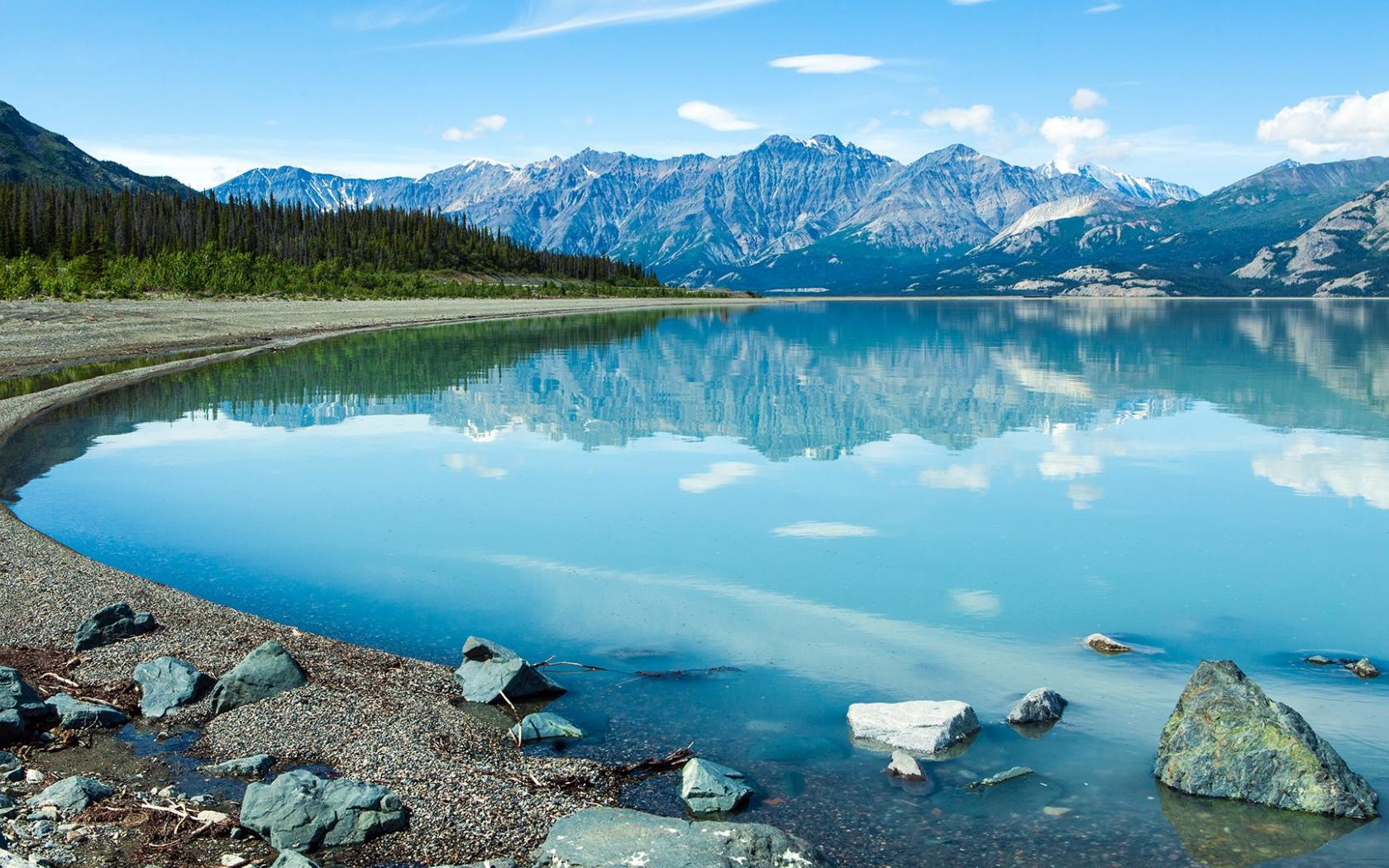 Обои Голубая прозрачная вода в озере на фоне гор