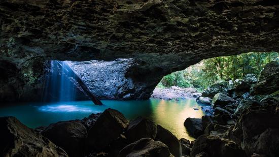 Обои Солнечные лучи в подземном гроте