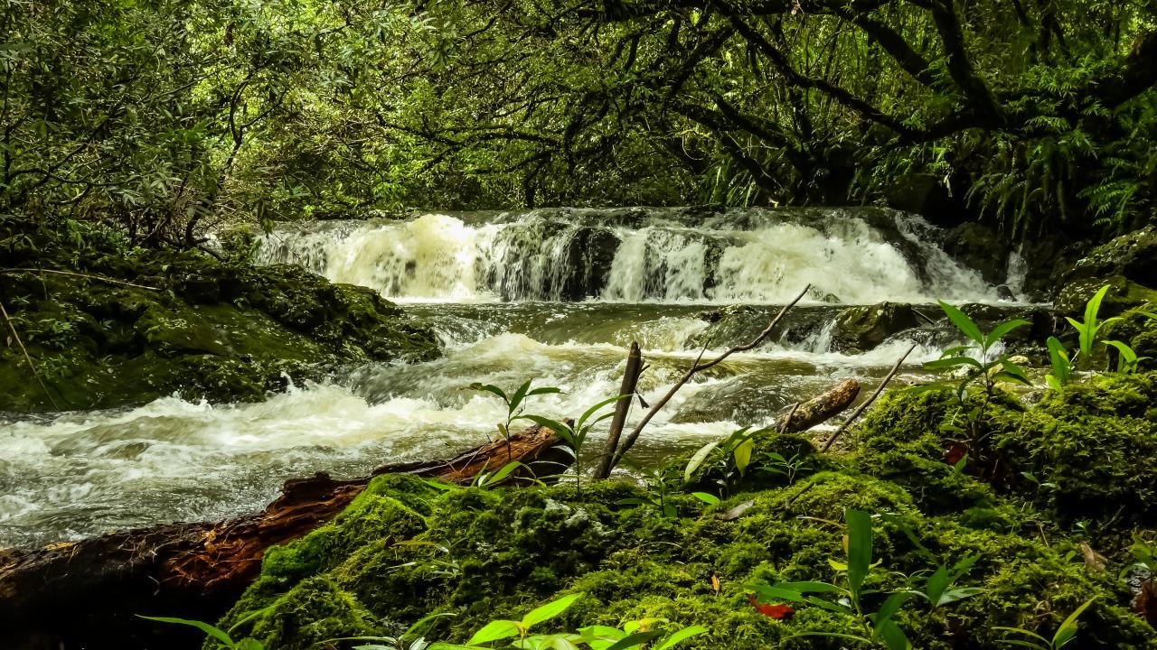 Обои Водопад в лесу между деревьев, Франция