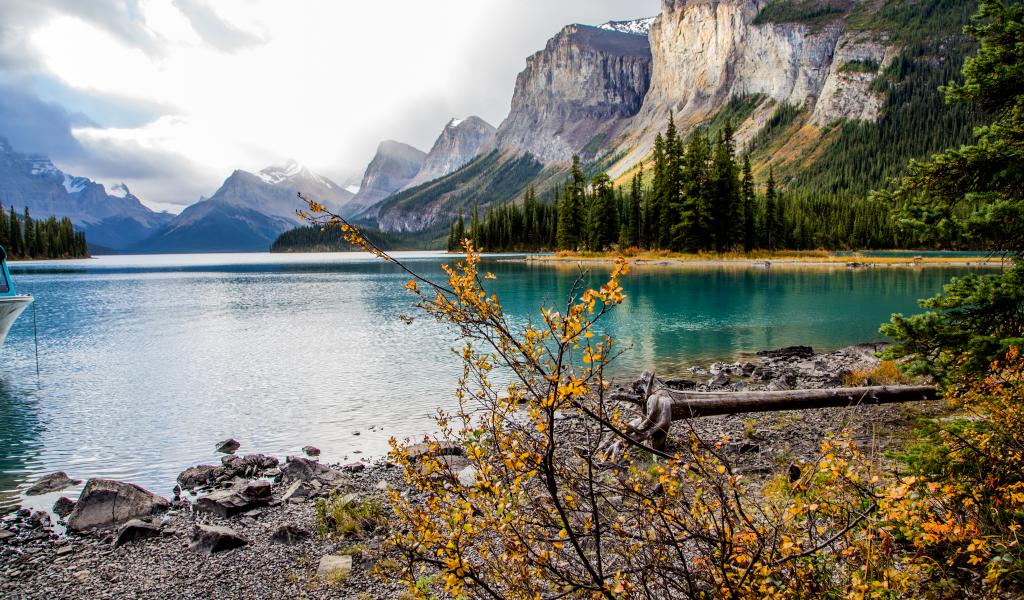 Обои Остров Спирит на озере Малайн, Национальный парк Джаспер, Канада