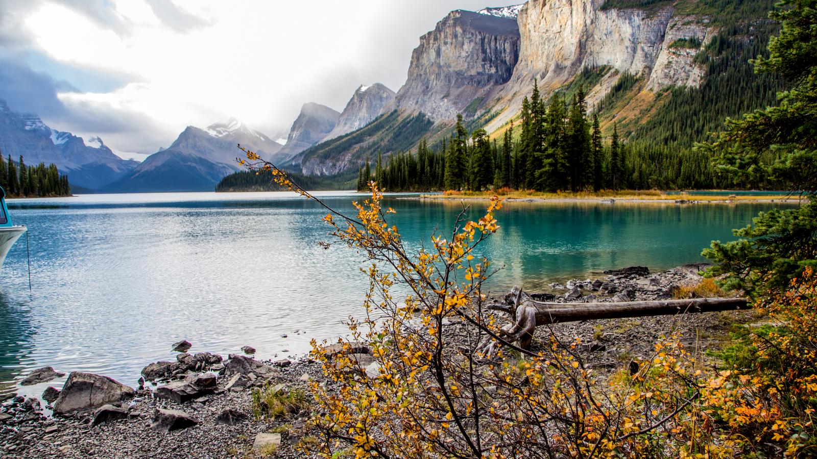 Обои Остров Спирит на озере Малайн, Национальный парк Джаспер, Канада